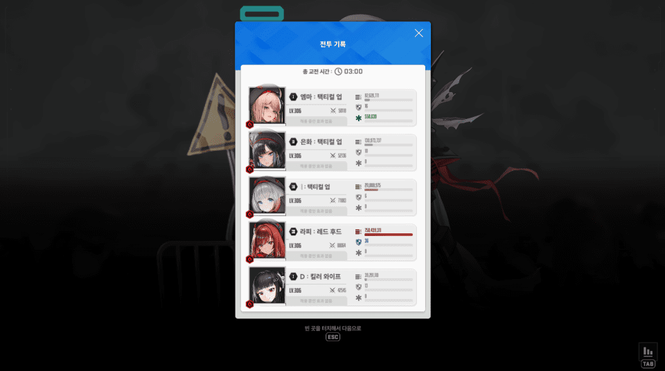 문제는 이렇게 파티 구성이 제한되는데도 앱솔루트 스쿼드가 기대만큼의 DPS를 내지 못한다는 점이다. 은화는 2버스트 기준으로 준수한 피해량을 내지만, 베스티는 기본 구조상 효율이 떨어져 기대치에 못 미친다.